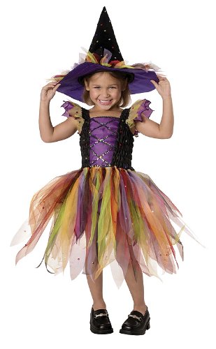 Bring out the colors of Autumn in this Great Glitter Witch Costume! The costume includes the hat and dress with the sequin accents! Add wings and become and Autumn Witch Fairy take off the hat and become an autumn ballerina!